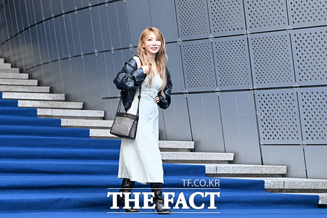제아가 더운 날씨에 손 부채질을 하고 있다.[더팩트ㅣ서예원 기자] 가수 제아가 5일 오후 서울 중구 동대문디자인플라자(DDP)에서 열린 2026 S/S 서울패션위크 리이 포토월에 참석해 포즈를 취하고 있다.