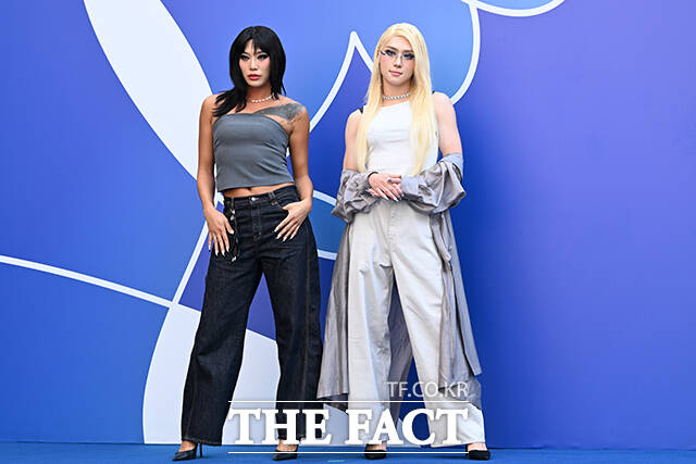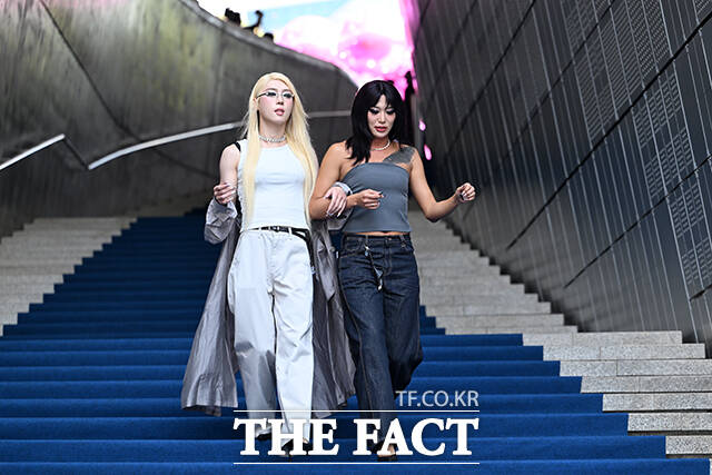 [더팩트ㅣ서예원 기자] 드랙아티스트 보리(왼쪽)와 지반이 5일 오후 서울 중구 동대문디자인플라자(DDP)에서 열린 2026 S/S 서울패션위크 리이 포토월에 참석해 포즈를 취하고 있다.