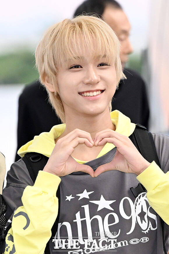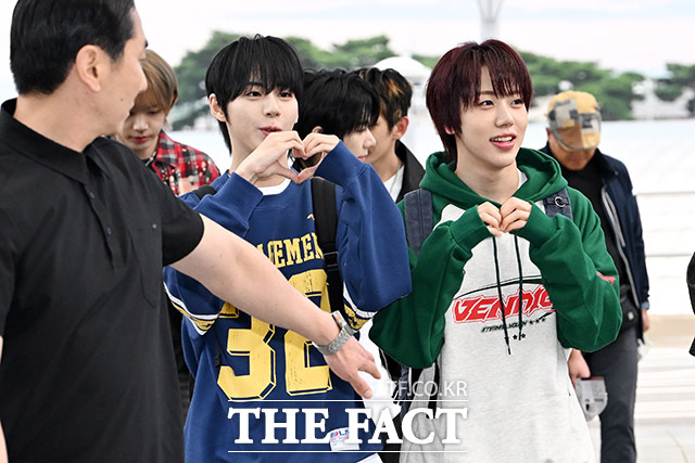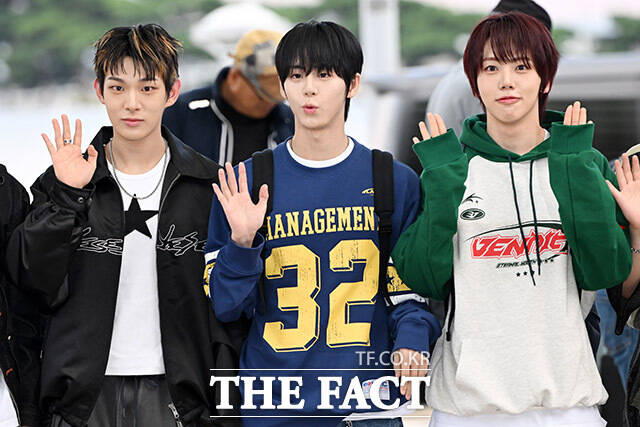 그룹 아홉이 오는 20일 마카오 아웃도어 퍼포먼스 베뉴(Macao Outdoor Performance Venue, 澳門戶外表演區)에서 개최되는 ‘2025 더팩트 뮤직 어워즈(TMA)’ 참석을 위해 18일 오전 인천국제공항을 통해 출국하며 포즈를 취하고 있다. /인천국제공항=남용희 기자