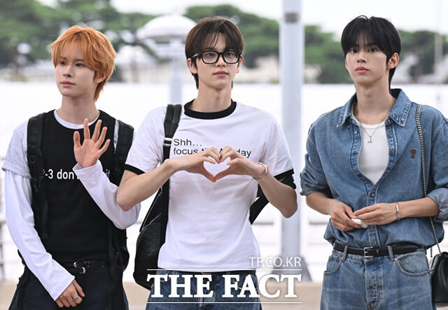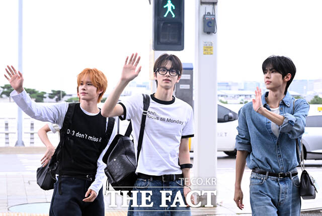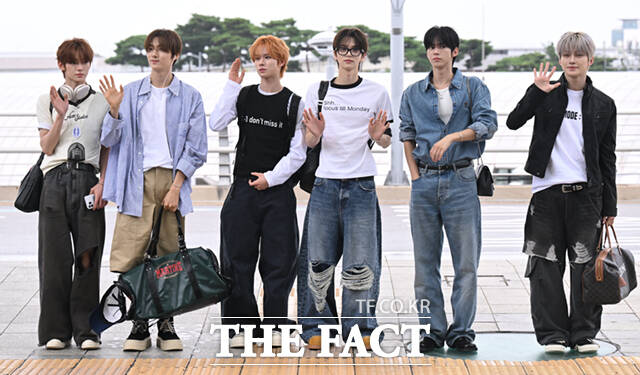 [더팩트ㅣ인천국제공항=이새롬 기자] 그룹 투어스(TWS) 한진, 영재, 경민, 신유, 도훈, 지훈(왼쪽부터)이 오는 20일 마카오 아웃도어 퍼포먼스 베뉴(Macao Outdoor Performance Venue, 澳門戶外表演區)에서 개최되는 ‘2025 더팩트 뮤직 어워즈(TMA)’ 참석을 위해 19일 인천국제공항을 통해 출국하며 인사하고 있다.
