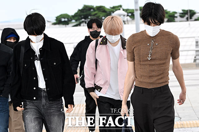 그룹 NCT WISH(엔씨티 위시)가 오는 20일 마카오 아웃도어 퍼포먼스 베뉴(Macao Outdoor Performance Venue, 澳門戶外表演區)에서 개최되는 ‘2025 더팩트 뮤직 어워즈(TMA)’ 참석을 위해 19일 오전 인천국제공항을 통해 출국하며 포즈를 취하고 있다. /인천국제공항=남용희 기자