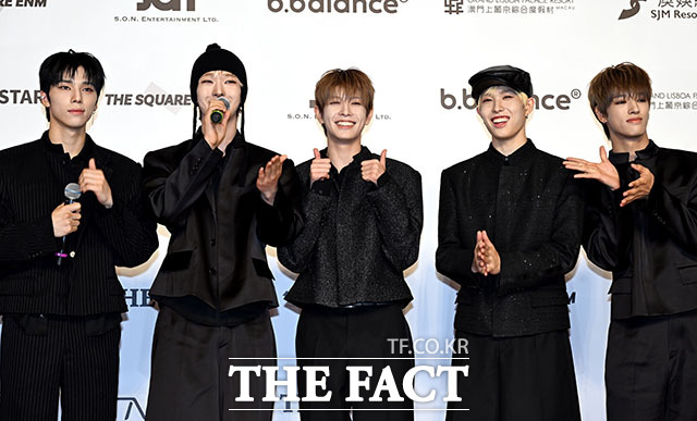 <더팩트>가 주최하고 팬앤스타와 더스퀘어이엔엠이 주관하는 '2025 더팩트 뮤직 어워즈(THE FACT MUSIC AWARDS, TMA)'가 20일 오후 '마카오 아웃도어 퍼포먼스 베뉴'에서 열린 가운데 그룹 넥스지(NEXZ)의 소 건, 토모야, 유키, 휴이, 세이타(왼쪽부터)가 재밌는 표정을 짓고 있다. /이효균 기자