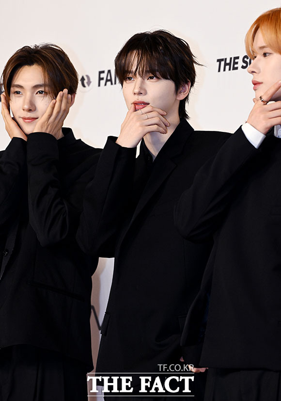 <더팩트>가 주최하고 팬앤스타와 더스퀘어이엔엠이 주관하는 '2025 더팩트 뮤직 어워즈(THE FACT MUSIC AWARDS, TMA)'가 20일 오후 '마카오 아웃도어 퍼포먼스 베뉴'에서 열린 가운데 그룹 투어스(TWS)의 영재, 신유, 경민(왼쪽부터)이 레드카펫을 밟고 있다. /이효균 기자