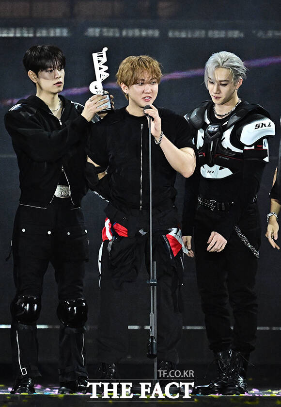 [더팩트ㅣ마카오=배정한 기자] <더팩트>가 주최하고 팬앤스타와 더스퀘어이엔엠이 주관하는 '2025 더팩트 뮤직 어워즈(THE FACT MUSIC AWARDS, TMA)'가 20일 오후 '마카오 아웃도어 퍼포먼스 베뉴'에서 열린 가운데 그룹 스트레이 키즈가 레코드 오프 더 이어를 수상한 뒤 소감을 밝히고 있다.