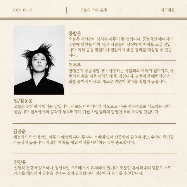 팬앤스타가 알려주는 오늘의 스타 운세 (임영웅, 지드래곤, 방탄소년단 뷔)