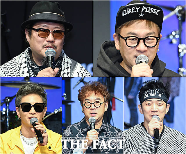 [더팩트ㅣ박헌우 기자] 크라잉넛 김인수와 이상혁, 박윤식, 이상면, 한경록(왼쪽부터)이 22일 오후 서울 마포구 KT&G 상상마당 라이브홀에서 열린 크라잉넛 30주년 기획 프로젝트 간담회에 참석하고 있다.