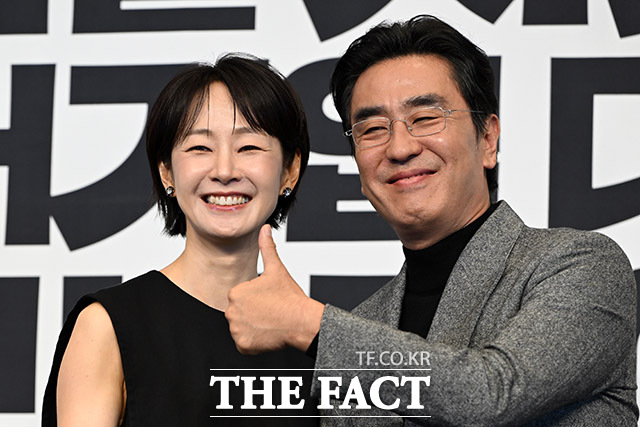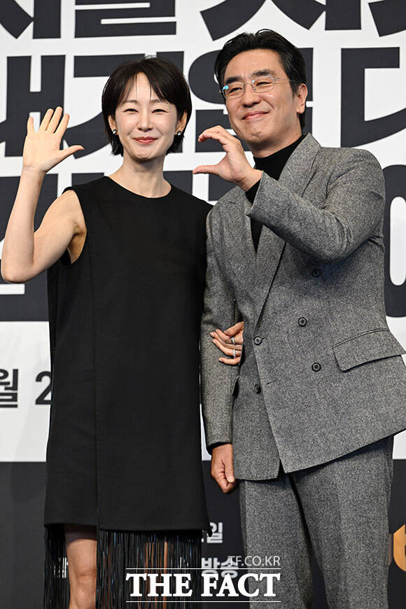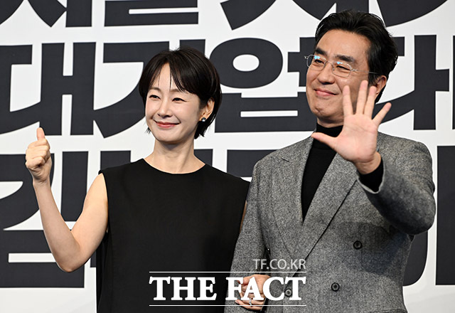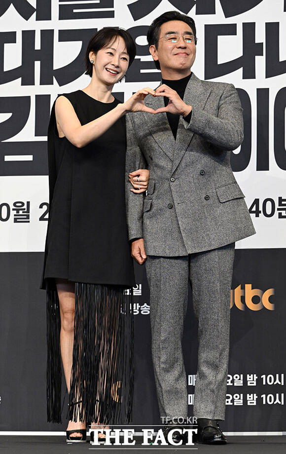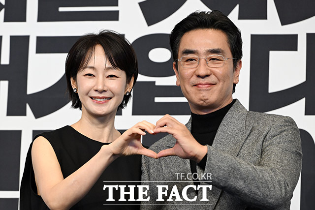 [더팩트ㅣ남용희 기자] 배우 명세빈(왼쪽)과 류승룡이 22일 오후 서울 구로구 더 링크 호텔에서 열린 JTBC 토일드라마 '서울 자가에 대기업 다니는 김 부장 이야기' 제작발표회에 참석해 포즈를 취하고 있다.