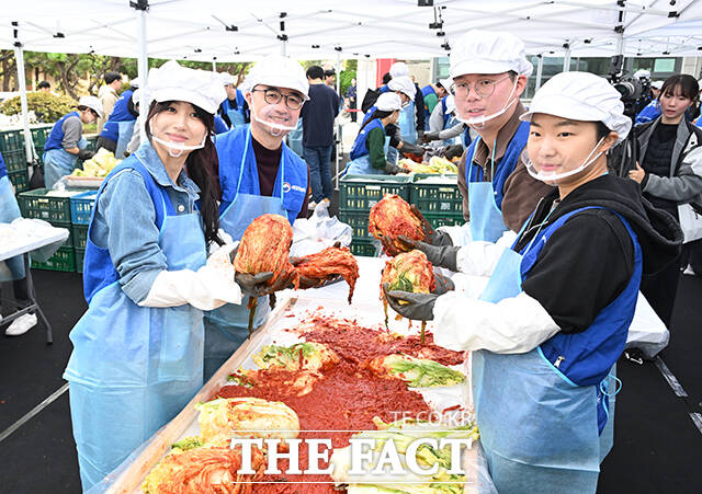봉사자들은 절인 배추에 양념을 채워 약 1500포기(절임 배추 3000kg)의 김장김치를 담갔다.