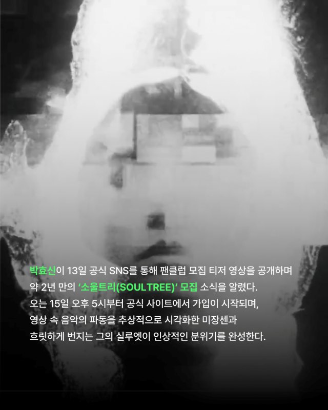 [팬앤스타 매거진] 박효신, 공식 팬클럽 '소울트리' 모집