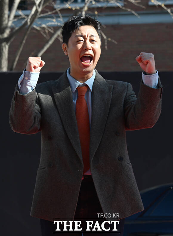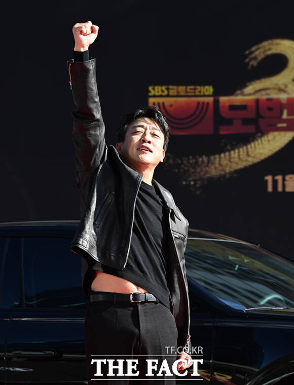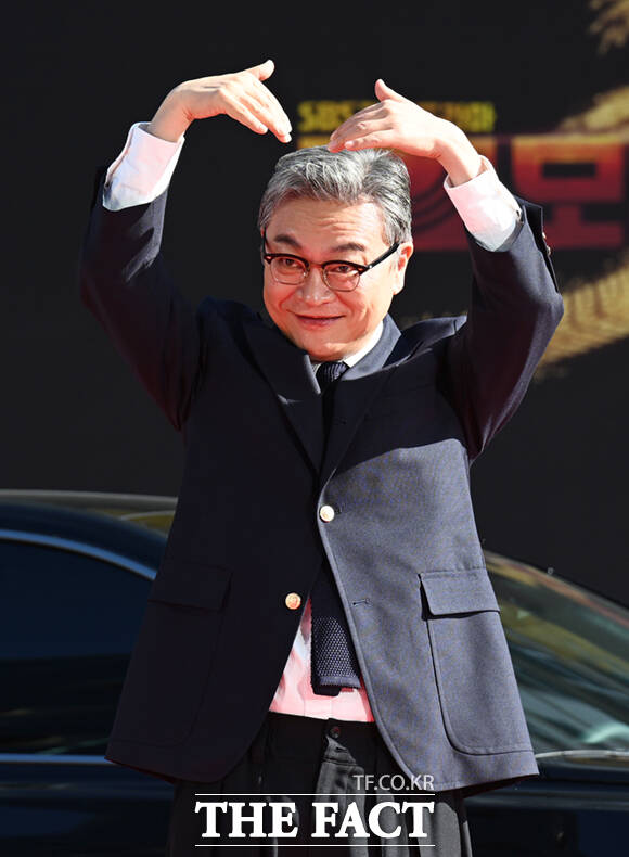 [더팩트ㅣ이새롬 기자] 배우 김의성과 장혁진, 배유람(왼쪽부터)이 18일 오후 서울 양천구 목동 SBS에서 열린 '모범택시3' 레드카펫 행사에 참석해 포즈를 취하고 있다.