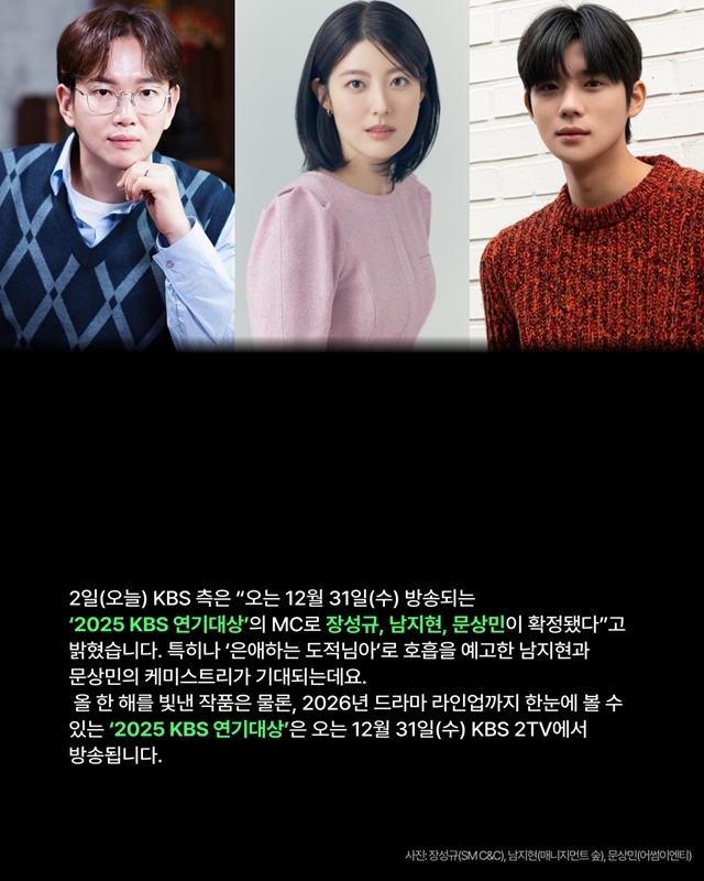 [팬앤스타 매거진] 장성규-남지현-문상민, ‘2025 KBS 연기대상’ MC 확정