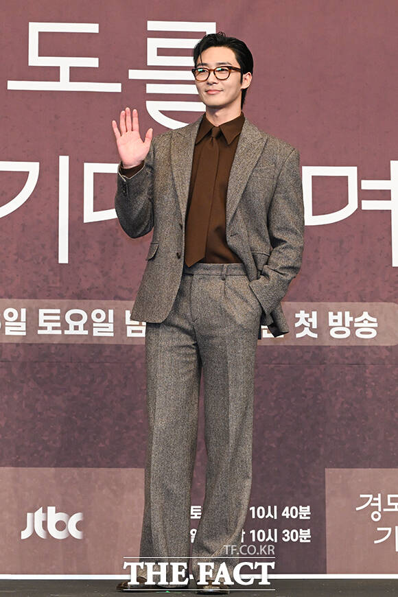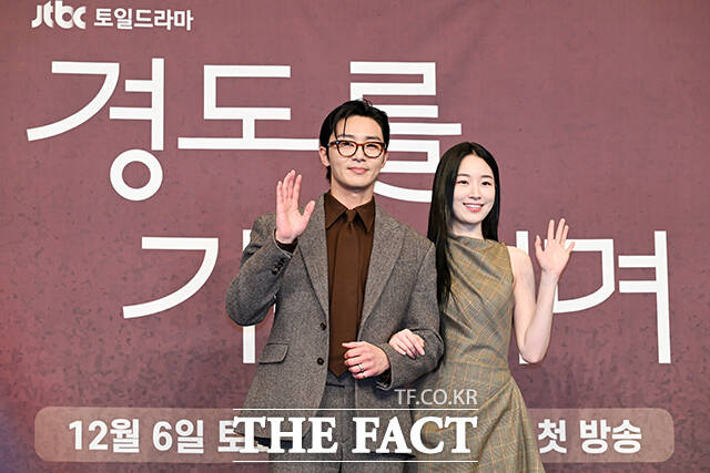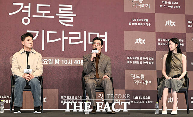 [더팩트ㅣ서예원 기자] 배우 박서준과 원지안, 임현욱 감독(왼쪽부터)이 4일 오후 서울 구로구 더링크호텔에서 열린 JTBC 드라마 '경도를 기다리며' 제작발표회에 참석해 포즈를 취하고 있다.