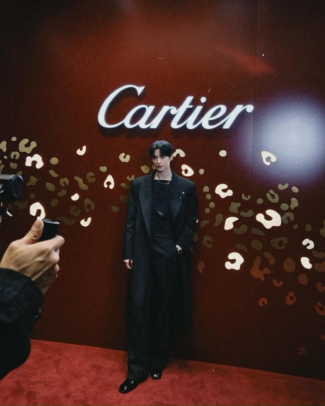 또 다른 사진에서는 붉은 벽과 Cartier 간판 앞에 선 그의 모습도 담겼다. 고급스러운 분위기 속에서 변우석은 자연스러우면서도 품격 있는 태도로 브랜드의 이미지를 한층 돋보이게 했다.