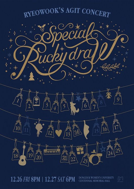 그룹 슈퍼주니어 멤버 려욱이 연말 콘서트를 개최한다. 'RYEOWOOK'S AGIT CONCERT : Special Rucky draW'는 12월 26일부터 27일까지 서울 성북구 동덕여자대학교 백주년기념관에서 열린다. 이번 공연은 려욱이 2024년 3월 전석 매진을 기록한 솔로 콘서트 이후 약 1년 9개월 만에 개최하는 새로운 콘서트이다.