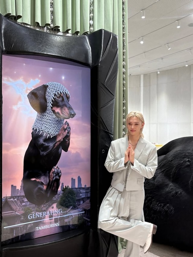 필릭스는 회색 정장을 입고 꽃다발을 든 모습과 함께 창문이 있는 실내 공간에서 정면을 응시하는 차분한 표정을 선보였다. 또한 강아지 광고 간판 옆에서 손을 모아 기도하는 자세로 미소를 짓는 모습도 공개하며 다채로운 매력을 뽐냈다.