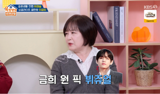 이금희는 아이돌 그룹 방탄소년단(BTS)의 뷔를 이상형으로 지목했다. 김종국이 "지금도 이상형이 방탄소년단 뷔인가"라고 질문하자, 이금희는 "늘 물어보셔도 뷔 님이다"라고 강조했다.