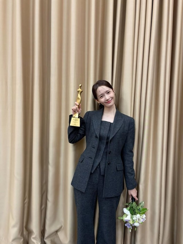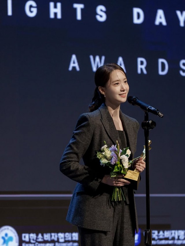 지난 9일 서울 강남구 한국과학기술회관에서 열린 '2025 제30회 소비자의 날 KCA 문화연예 시상식'에 참석한 윤아는 단아한 회색 정장을 입고 꽃다발과 상장을 들며 미소를 지었다. 이날 다수의 연예인이 참석한 자리에서 윤아는 세련된 매력과 프로페셔널한 모습을 선보여 시선을 사로잡았다.