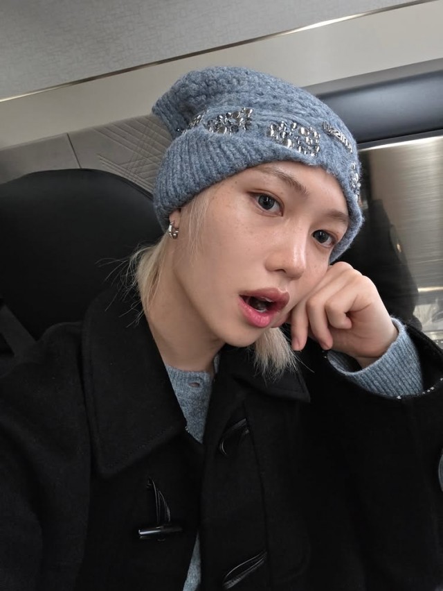 함께 공개된 사진에는 회색 비니와 검은색 외투를 착용한 필릭스가 차량 내부에서 한 손으로 머리를 감싸거나 턱을 괴고 정면을 응시하는 모습이 담겼다. 차분하면서도 깊은 생각에 잠긴 듯한 표정이 눈길을 끈다. 귀걸이 포인트도 돋보이며, 평소와는 다른 차분한 분위기가 팬들의 관심을 받고 있다.