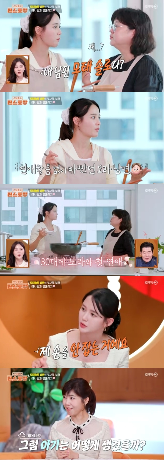 남보라는 한강 시티뷰를 자랑하는 신혼집에서 여유를 즐기고 있었다. 초인종이 울리자 남보라의 어머니가 등장했다. 남보라의 어머니는 13남매를 키워낸 경험이 있는 만큼, 이번 방송에서 처음으로 예능에 출연했다. 남보라의 어머니는 반려견을 보며 "신혼부부 집에 아기가 있어야 되는데 강아지가 있다"라고 말해 웃음을 자아냈다.