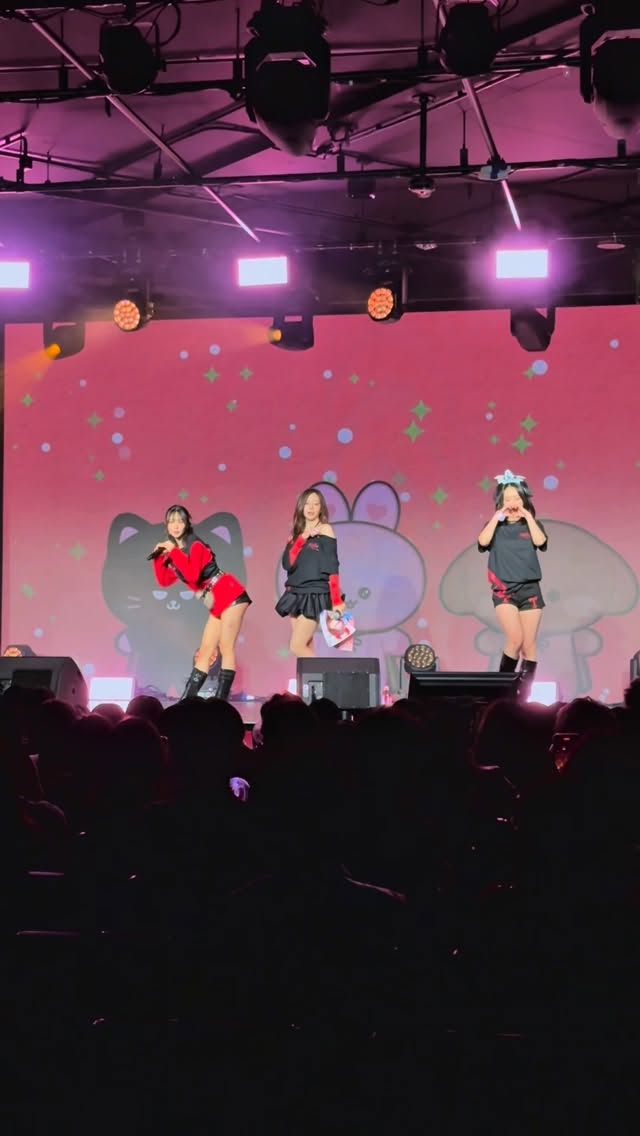 이번 팬콘서트에서 멤버들은 빨간색 상의와 검은색 하의를 착용한 채 무대 위에서 역동적인 군무를 선보이며 팬들과 특별한 시간을 보냈다. 분홍색 배경에 만화 캐릭터 일러스트가 돋보이는 무대 세트와 화려한 조명이 어우러져 공연의 완성도를 높였고, 멤버들은 환한 미소로 무대를 가득 채우며 팬들의 환호를 이끌어냈다.