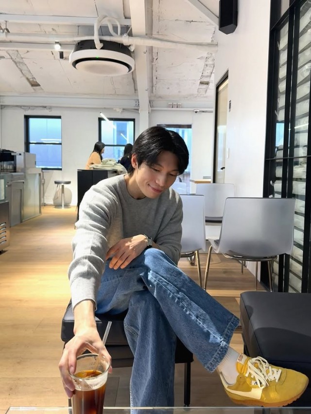 또 다른 사진에서는 회색 스웨터와 청바지를 입은 위하준이 카페 내부에서 앉아 미소를 지으며 음료를 바라보는 자연스러운 모습이 포착됐다. 이와 함께 스마트폰을 조작하는 모습도 담겨, 편안한 일상 속에서도 끊임없이 집중하는 태도를 엿볼 수 있었다.