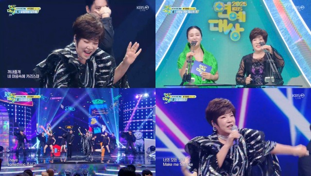 초이랩 소속 가수 김연자가 '2025 KBS 연예대상'에서 다채로운 활약을 펼쳤다. 김연자는 20일 서울 여의도 KBS 신관 공개홀에서 생방송으로 진행된 행사에 참석해 시상과 축하 공연을 동시에 소화했다.