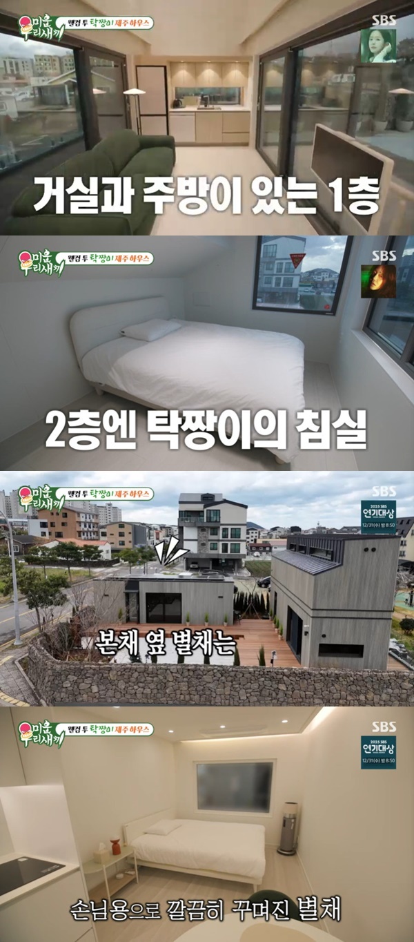탁재훈의 제주 집은 본채와 별채로 나뉘어진 넉넉한 구조를 자랑했다. 서장훈은 "요즘 유행하는 조립형 주택인데, 단 5일 만에 지었다고 하더라"며 집의 건축 비하인드를 밝혀 모두를 놀라게 했다. 이 집은 럭셔리한 오션뷰와 대비되는 탁재훈의 소탈한 일상도 시청자들에게 웃음을 주었다. 그는 세안 도중 잠을 깨기 위해 자신의 뺨을 때리고, 목이 마르자 정수기 대신 싱크대에서 나오는 물을 허겁지겁 마시는 모습으로 시청자들을 유쾌하게 했다.