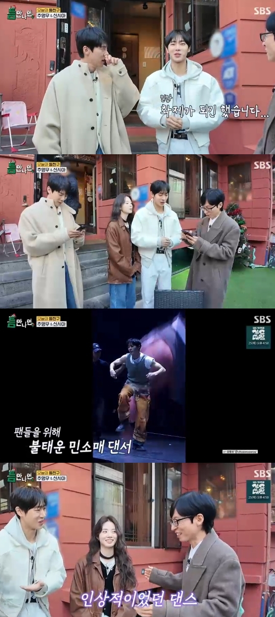 방송에서 유연석은 석관동을 방문해 한국예술종합학교 출신인 추영우를 언급하며 "이 지역을 잘 알겠다"고 말했다. 이어 그는 "팬미팅에서 춤춘 게 화제 된 것 같더라"고 질문을 던졌다. 유재석은 이 발언을 듣고 즉시 휴대전화로 검색을 시작했다. 그는 "추영우 민소매 바로 나온다"고 언급하며 관련 영상을 찾았다.