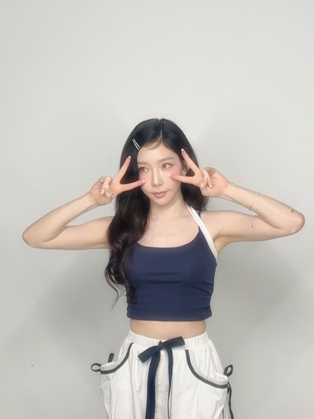 태연은 최근 자신의 SNS에 크리스마스 트리 이모티콘과 함께 여러 장의 사진을 올렸다. 사진 속 태연은 네이비색 탑과 흰색 스커트를 매치한 깔끔한 스타일을 선보였다. 한쪽 다리를 살짝 들고 정면을 바라보며 환한 미소를 짓는 모습과 손을 흔들며 인사하는 모습에서 밝고 친근한 매력이 돋보였다. 특히 머리에 헤어핀을 착용한 단정한 헤어스타일이 눈길을 끌었다.
