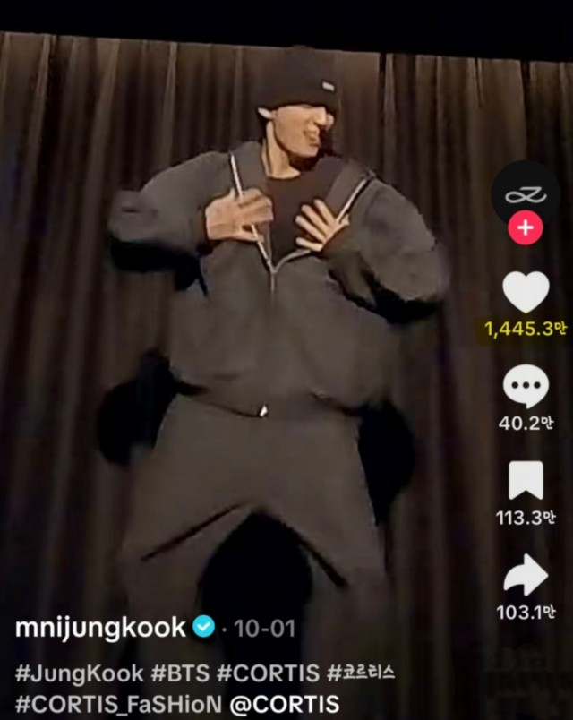 방탄소년단(BTS) 정국의 틱톡(TikTok) 댄스 영상이 조회수 1억을 돌파했다. 이 영상은 지난 10월 정국이 자신의 개인 틱톡 계정을 통해 공개한 후배 그룹 코르티스(CORTIS)의 'FaSHioN' 댄스 영상으로, 최근 1억뷰를 넘어섰다. 해당 영상은 공개 약 3개월 만에 1억뷰를 기록하며, '좋아요' 수는 1445만 이상에 달한다. 이는 정국의 틱톡 계정에서 보여준 압도적인 인기와 파급력을 나타낸다.