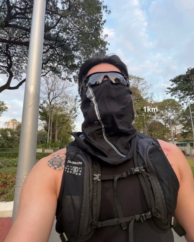 최근 태용은 자신의 SNS를 통해 "TY on a 5K track in BKK"라는 글과 함께 여러 장의 셀카를 올렸다. 사진 속 태용은 검은색 조끼와 마스크를 착용한 채 선글라스를 쓴 모습으로 공원 트랙을 배경으로 셀카를 찍고 있다. 팔에는 문신이 돋보이며, 주변에는 나무와 함께 다른 러너들도 보인다.