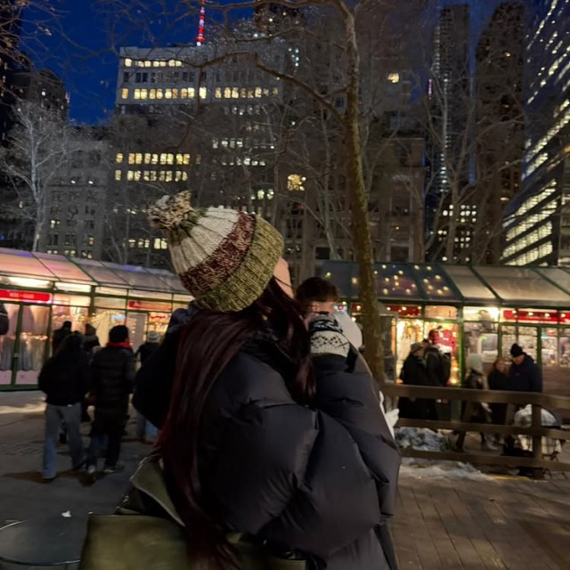 공개된 사진들 속 허윤진은 붉은색 드레스와 검정색 부츠를 착용한 채 크리스마스 트리와 조명이 어우러진 실내 공간에서 한 사람을 부드럽게 안고 있는 모습이다. 정면을 바라보며 입을 다문 표정과 우아한 자태가 돋보인다. 따뜻한 분위기의 공간과 함께 송년 분위기가 물씬 풍기는 장면이 인상적이다.
