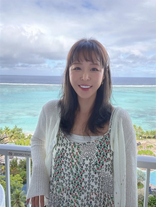 신지는 흰색 니트에 패턴이 있는 원피스를 매치한 편안하면서도 세련된 스타일을 선보였다. 바다와 하늘이 어우러진 아름다운 풍경과 수영장이 보이는 야외 공간에서 미소를 띤 채 정면을 응시하거나 측면을 향해 서 있는 모습이 인상적이다. 머리에는 작은 헤어핀이 포인트로 더해져 자연스러우면서도 여성스러운 매력을 배가시켰다.