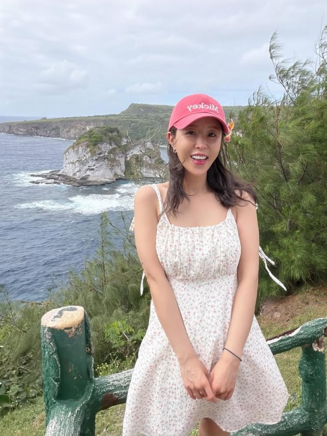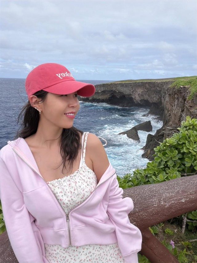 신지는 최근 자신의 인스타그램에 분홍색 모자와 후드집업에 흰색 꽃무늬 원피스를 매치한 사진을 공개했다. 사진 속에서 신지는 바다와 절벽이 어우러진 아름다운 자연 풍경을 배경으로 한 손으로 나무 기둥을 잡은 채 미소를 지으며 정면을 바라보고 있다. 이어 측면을 바라보며 서 있는 모습에서도 환한 미소와 함께 밝은 표정을 선보였다.