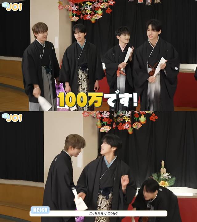 지난 9일 JO1 공식 유튜브 채널에 공개된 '[Hi! JO1] EP.97'에서는 멤버들이 총 100만 엔(한화 약 1,000만 원 상당)의 거액의 세뱃돈을 걸고 펼치는 '신춘 기획 정월 놀이 배틀' 전편이 담겼다. 멤버들은 새해 첫 방송부터 우승을 향한 불타는 집념과 몸개그를 아끼지 않으며 팬들에게 큰 웃음을 선사했다.
