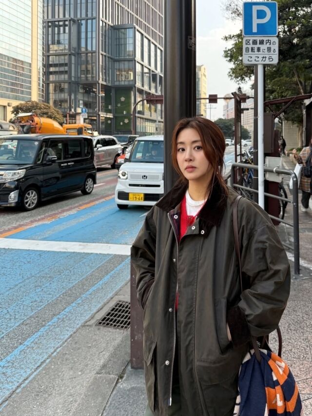 강소라는 오버핏 집업 코트를 가볍게 걸쳐 동네 마실을 나온 듯한 자연스러운 여행룩을 완성했다. 또 다른 사진에서는 크롭 기장의 퍼 후드 베스트를 착용하여 보온성과 스타일을 동시에 강조했다. 이러한 아이템 조합 속에서도 강소라의 특유의 세련된 분위기가 돋보였다.