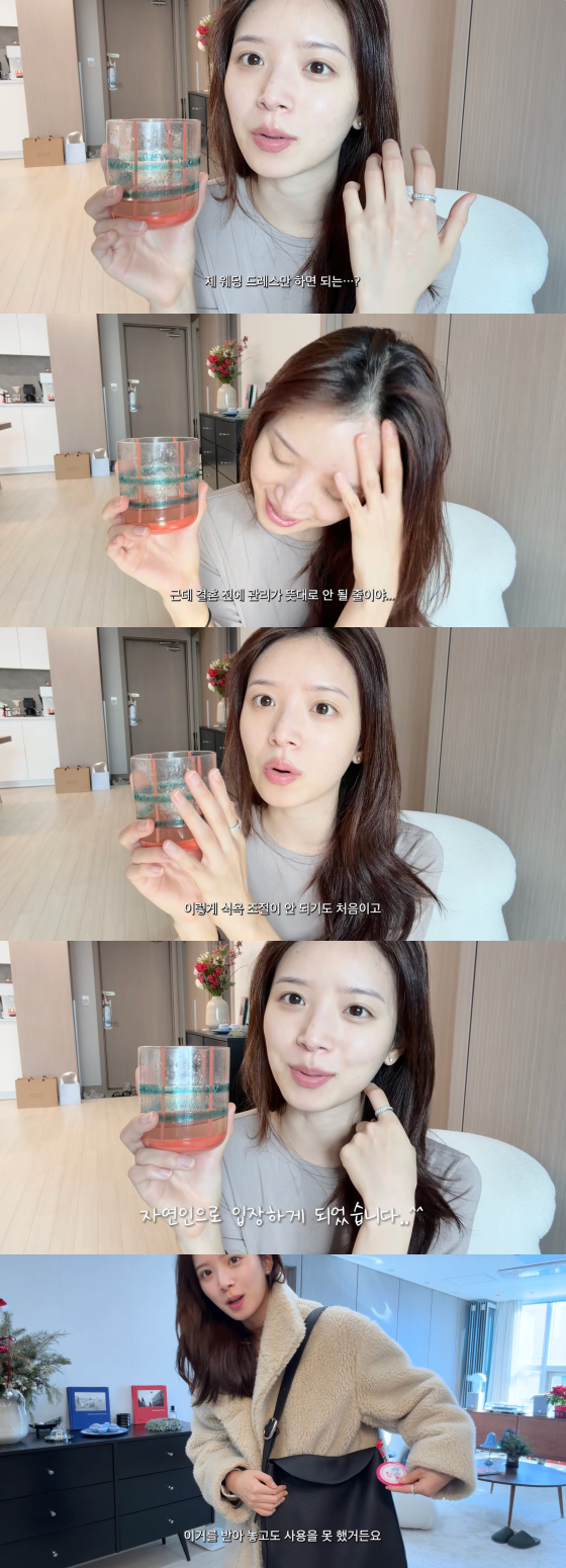 김지영이 결혼식 드레스 핏을 포기했다. 김지영은 16일 자신의 유튜브 채널에 '리프팅도 다이어트도 못한 결혼 전 관리 브이로그' 영상을 공개하며 이 같은 사실을 밝혔다. 그는 오는 2월 결혼식을 예정하고 있다. 현재 임신 중인 김지영은 결혼 전 관리가 뜻대로 진행되지 않았다고 언급했다.
