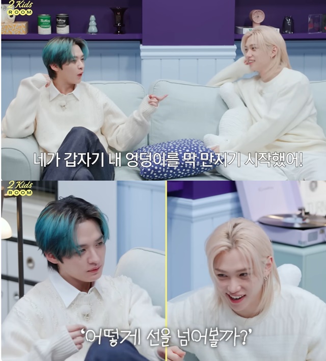 스트레이 키즈 리노와 필릭스가 무대 위에서 벌어지는 아슬아슬한 엉덩이 스킨십에 얽힌 유쾌한 비하인드를 공개했다.