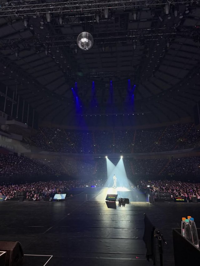 가수 비가 최근 대형 공연장에서 무대 위에 홀로 선 모습이 공개됐다.