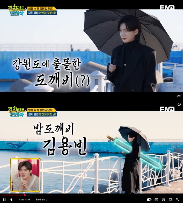 이날 김용빈은 여행의 시작부터 강렬한 존재감을 뽐냈다. 그는 바닷가에서 롱코트에 우산을 들고 서서 드라마 '도깨비'의 한 장면을 연출해 멤버들을 놀라게 했다. 멀리서 이를 지켜보던 멤버들은 "영화 촬영하는 줄 알았다", "형사님 같다"며 감탄했지만, 곧이어 박지현이 "누가 바다에 이렇게 입고 오냐"며 핀잔을 줘 웃음을 자아냈다.