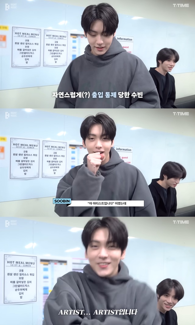 하지만 경호원이 '아티스토'라는 말을 알아듣지 못하자, 수빈은 최후의 수단을 꺼내 들었다. 그는 "못 알아들으시길래 그 앞에서 춤을 췄다. 그랬더니 그제야 '아~' 하시며 들여보내 주셨다"며 직접 당시 춤추는 시늉을 재연해 현장을 웃음바다로 만들었다.
