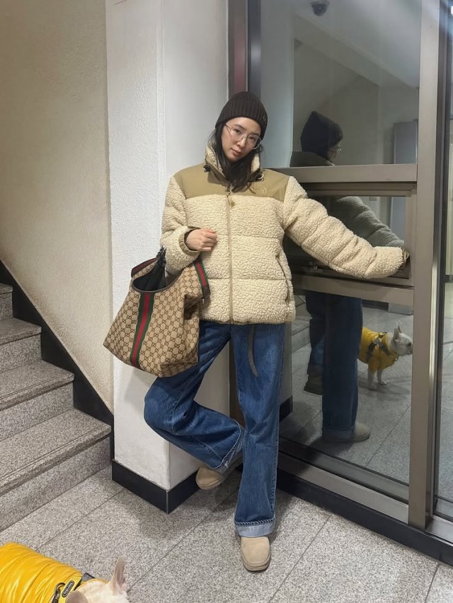 사진 속 아이린은 베이지색 패딩에 청바지를 매치하고 가방을 든 모습, 분홍색 배경에서 제품 샘플을 들고 있는 장면, 거울 셀카를 찍는 캐주얼한 일상 등 창업 초기의 분주한 현장을 진솔하게 보여줬다. 모자와 안경 착용으로 편안하면서도 집중한 표정이 인상적이다.