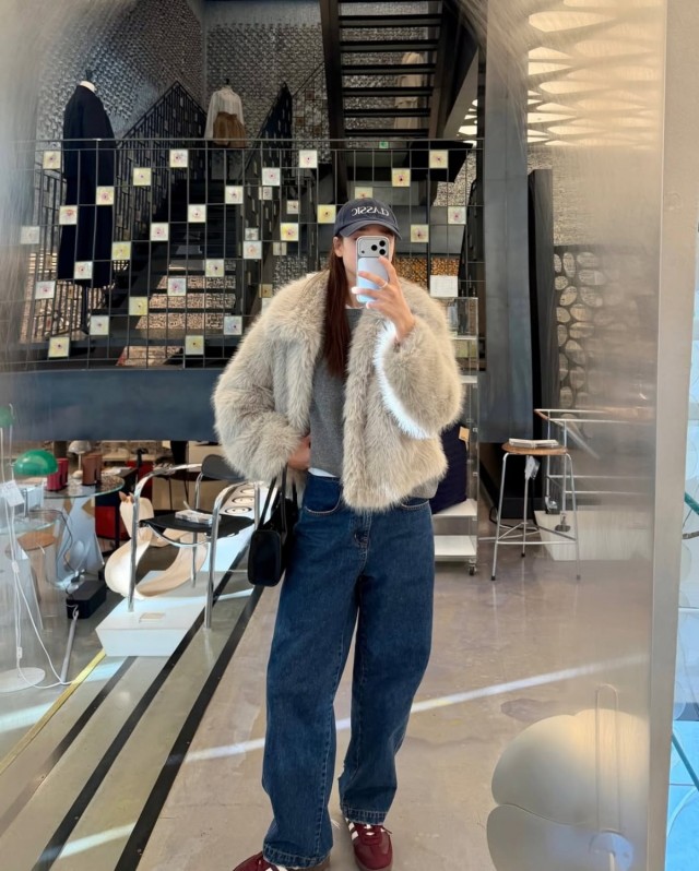 또 다른 사진에서는 카페 테이블에 앉아 캡과 그레이 니트를 매치한 모습이 담겼다. 이 사진은 편안한 분위기를 연출하며, 앞에 놓인 커피와 디저트가 '퀵 커피타임'이라는 멘트와 자연스럽게 연결됐다. 손연재는 거울 셀카에서도 퍼 재킷과 데님 팬츠를 조합해 캐주얼한 실루엣을 완성했다. 붉은 톤의 슈즈와 블랙 백으로 룩의 균형을 잡았다.