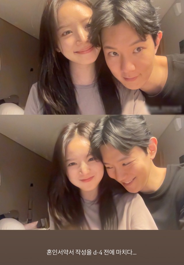 김지영은 29일 SNS에 예비 신랑 윤수영 대표와 함께 찍은 사진을 공개했다. 그는 "혼인서약서 작성을 D-4 전에 마치다..."라는 글을 남기며 두 사람의 다정한 모습을 보여주었다. 결혼식을 앞둔 두 사람은 신혼부부 같은 모습으로 미소를 지어 보는 이들을 흐뭇하게 만들었다.