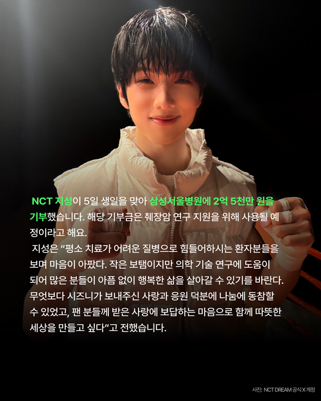 [팬앤스타 매거진] NCT 지성, 2억 5천만원 기부