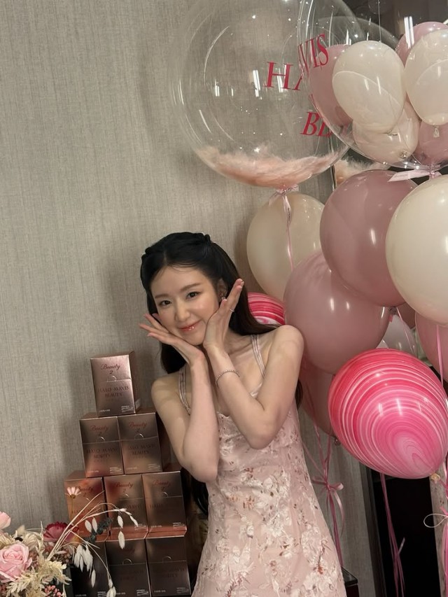 또한, 행사장에서는 슈화가 머리에 액세서리를 착용한 채 회색 벽과 풍선, 선물 상자가 어우러진 배경에서 다양한 포즈를 취하는 모습이 포착되었다. 그는 손가락으로 턱을 괴고 생각에 잠긴 듯한 모습부터 과일을 들고 얼굴 옆에서 환하게 웃는 등 다채로운 매력을 선보였다.