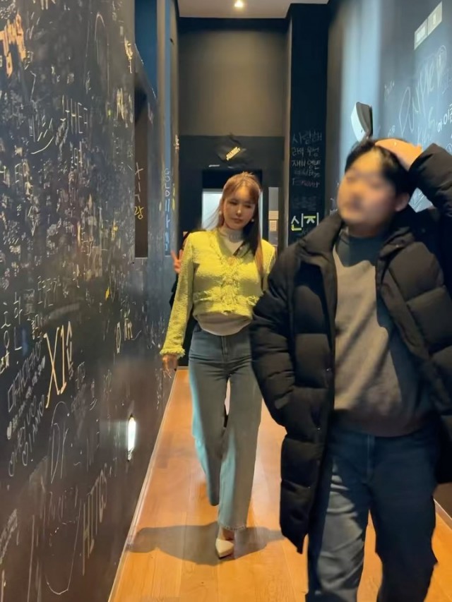 함께 공개된 사진에서는 연두색 크롭 자켓과 흰색 티셔츠, 청바지를 매치한 편안한 캐주얼 룩으로 한 손은 허리에 올리고 미소를 짓는 모습이다. 목재 구조물과 검은 배경이 어우러진 장소에서 양팔을 벌리며 정면을 응시하는 등 경쾌한 에너지가 느껴진다. 또 다른 사진에서는 검은 벽에 낙서가 있는 복도에서 다른 인물과 함께 걸으며 활기찬 분위기를 자아냈다.