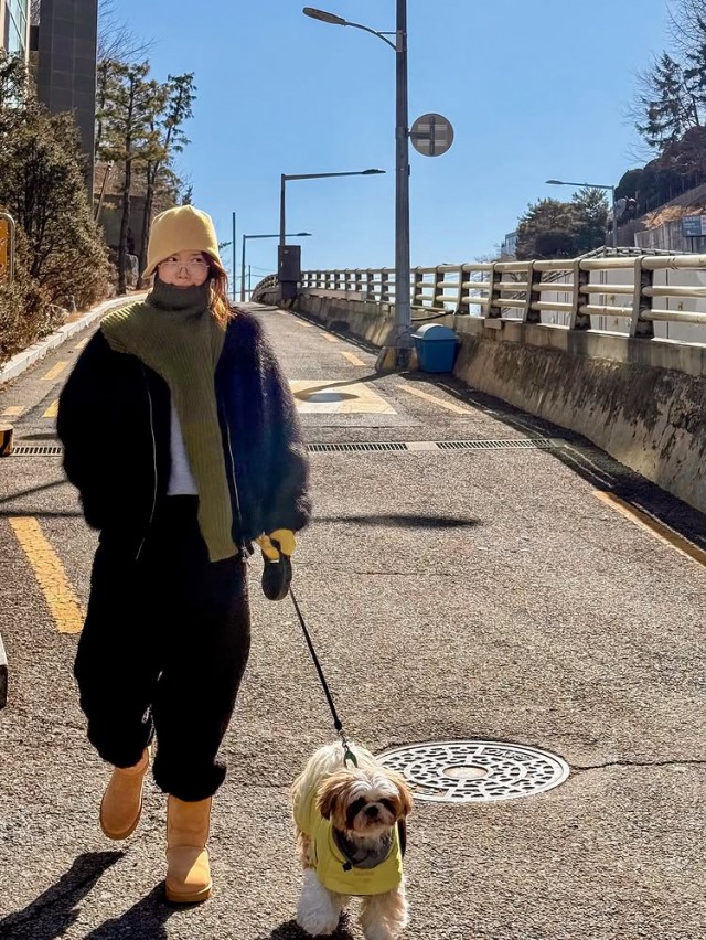 채정안은 최근 SNS에 "추워도 함께 걷기?❤️ 주말 잘가??"라는 글과 함께 여러 장의 사진을 올렸다. 사진 속 그녀는 검은색 퍼 코트에 노란색 모자와 초록색 스카프를 매치해 따뜻하면서도 세련된 겨울 패션을 선보였다. 검은 바지를 착용한 채 리드줄을 든 손에는 노란 장갑을 끼고 있어 포근한 분위기를 자아냈다.