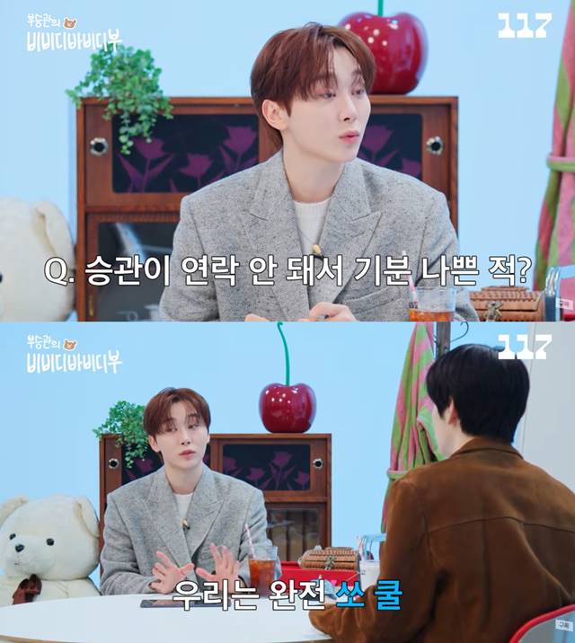 지난 5일 공개된 유튜브 채널 '일일칠'의 웹 예능 '부승관의 비비디바비디부'에는 수빈이 게스트로 출연해 승관과 거침없는 입담을 뽐냈다. 이날 방송에서 승관은 수빈에 대해 "서로 연락 잘 안 되기로 유명한데, 기분 나쁜 적은 없었느냐"라고 물으며 두 사람의 독특한 소통 방식을 언급했다.