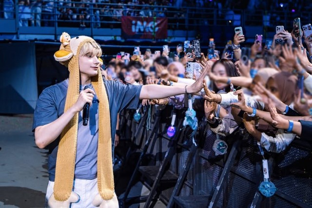 지난 공연에서 멤버들은 흰색 재킷과 검은 바지를 비롯해 각각의 개성을 살린 스타일링으로 무대를 빛냈다. 특히 큰 스크린에 화려한 그래픽과 우주를 연상케 하는 영상이 배경으로 펼쳐지면서 공연의 몰입감을 극대화했다. 한 멤버는 마이크를 잡고 정면을 응시하며 노래하는 모습으로 팬들의 뜨거운 환호를 받았다.